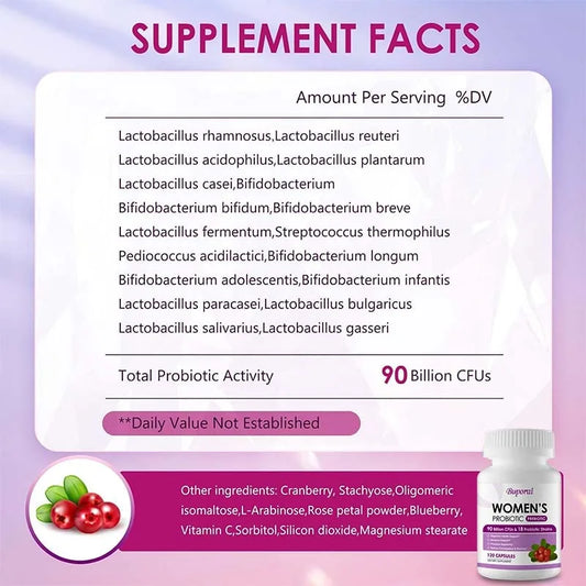 Women's Probiotic - 90 Billion CFU, with Organic Prebiotics & Cranberry Fruit Powder, Digestive Immune Vaginal & Urinary Health