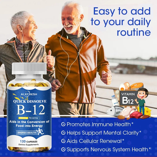 Vitamin B12 Capsules for Energy Metabolism Relieve Fatigue Improve Mood and Cognitive Function Nervous System and Heart Health