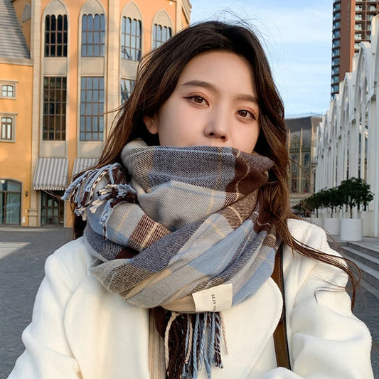Korean Style Oversized Plaid Scarf | Warm Cashmere-Feel Winter Wrap Shawl