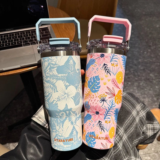 SITARAYURI 20&30oz Thermos Bottle Stainless Steel Large Capacity Straw Double Drink Cup Portable Outdoor Camping Car Coffee Mug